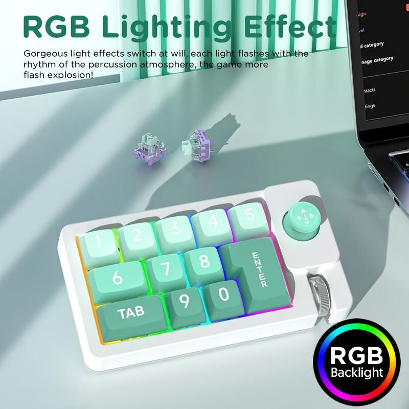 1. 12-keys wired mechanical keyboard, 12 RGB dazzling color lighting effects, switch at will
