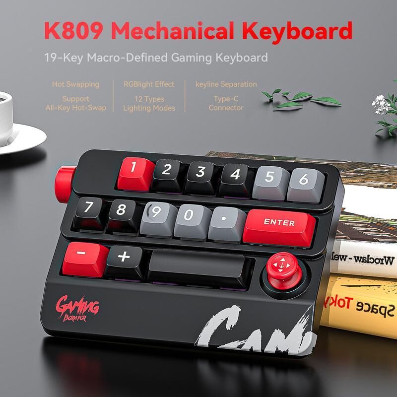 1. 19-key macro-defined gaming keyboard, 12 RGB dazzling color lighting effects, free switching