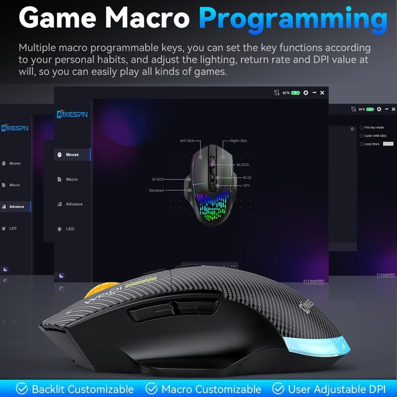 1. Tri-mode gaming macro mouse, Type-C charging, long-lasting battery life