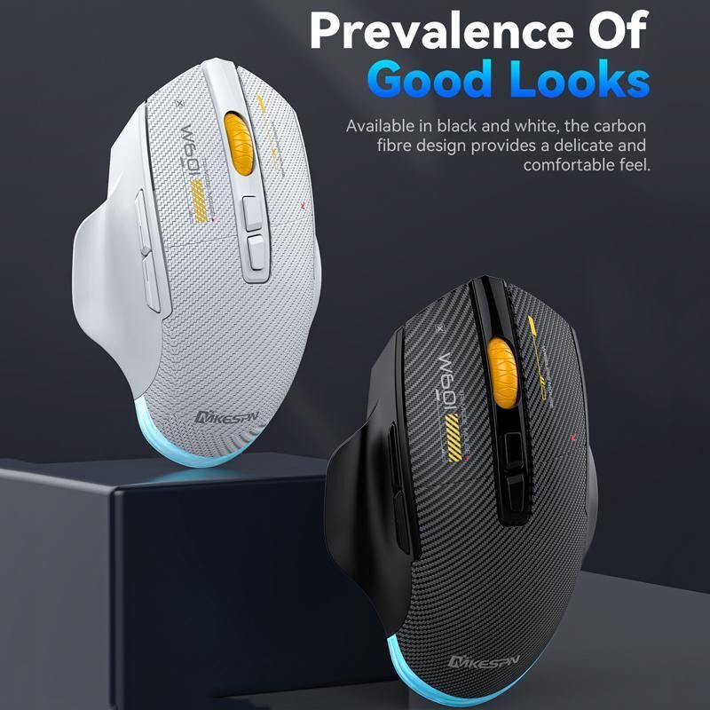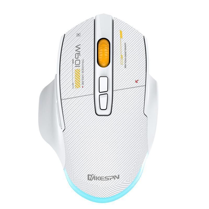 MKESPN W601 Silent Wireless Tri-mode Macro Gaming Mouse Carbon Fiber 12800DPI Bluetooth Mouse(White) (MKESPN)