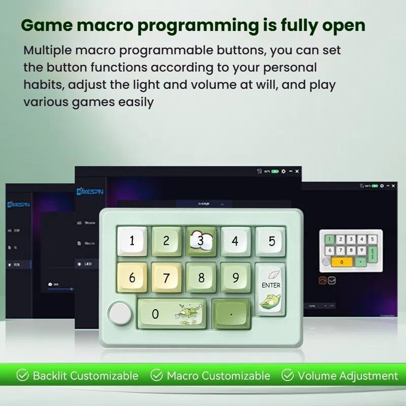 1. 12-key tri-mode mechanical keyboard, 12 RGB colorful lighting effects, free switching