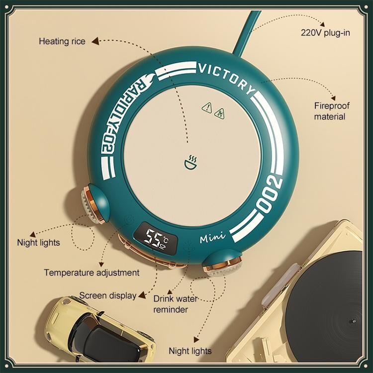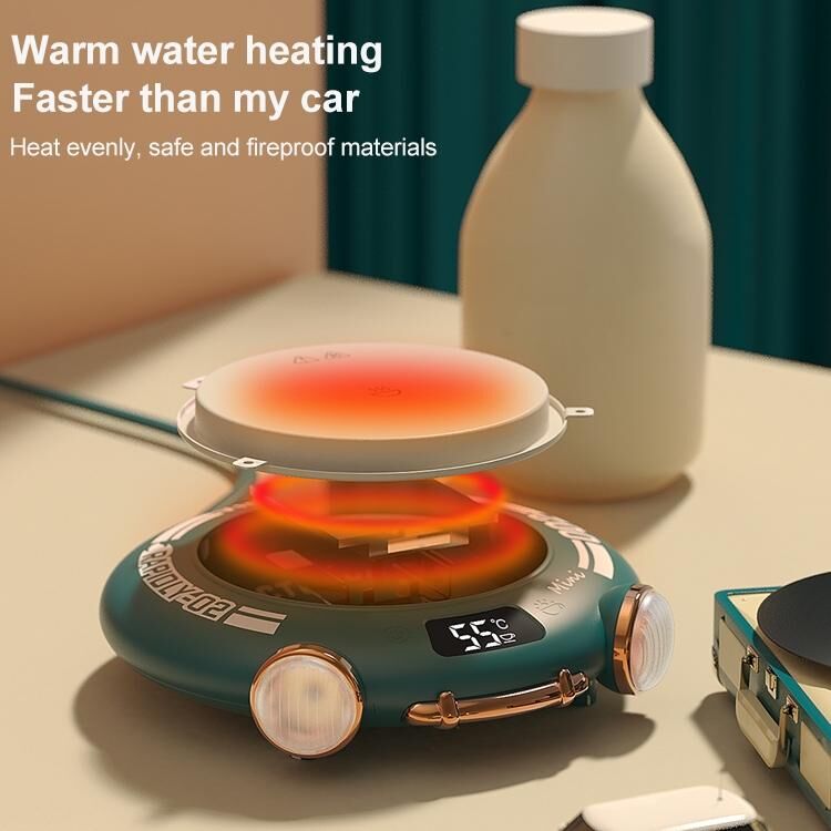 MN030 20W 110-220V Small Green Warm Coaster with LED Digital Display & Night Light, CN Plug (Green)