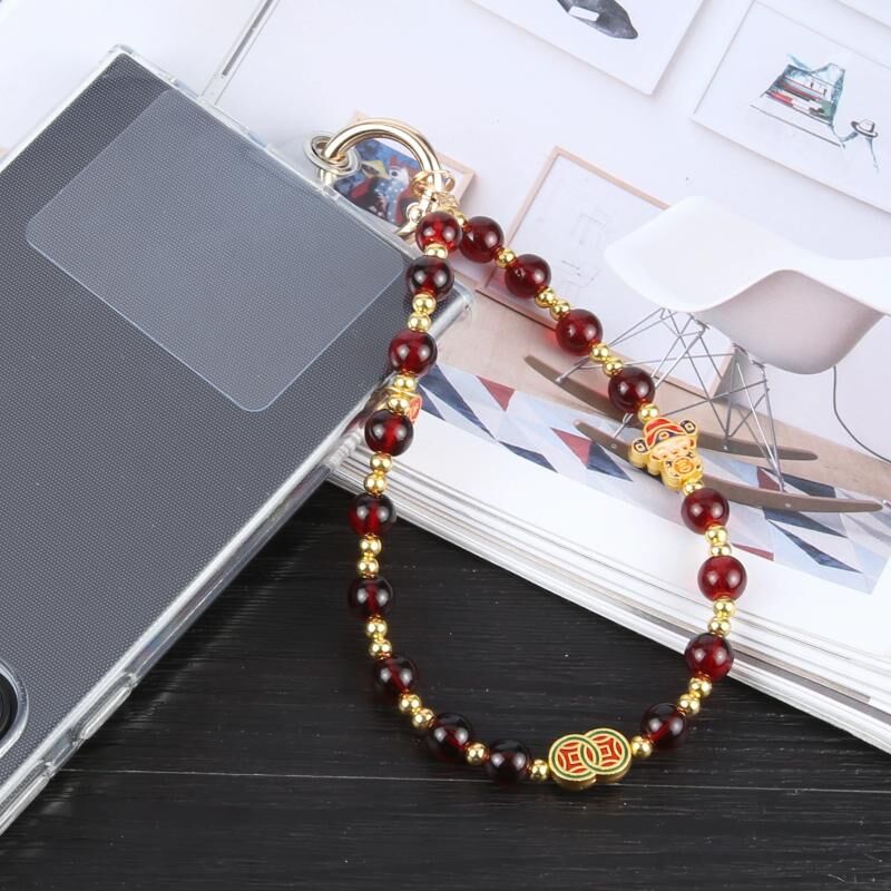 Κινητό τηλέφωνο αντι-χάσει Ευοίωνη χάντρα αλυσίδα αλυσίδα Σύντομη Lanyard (κόκκινο κρασί)