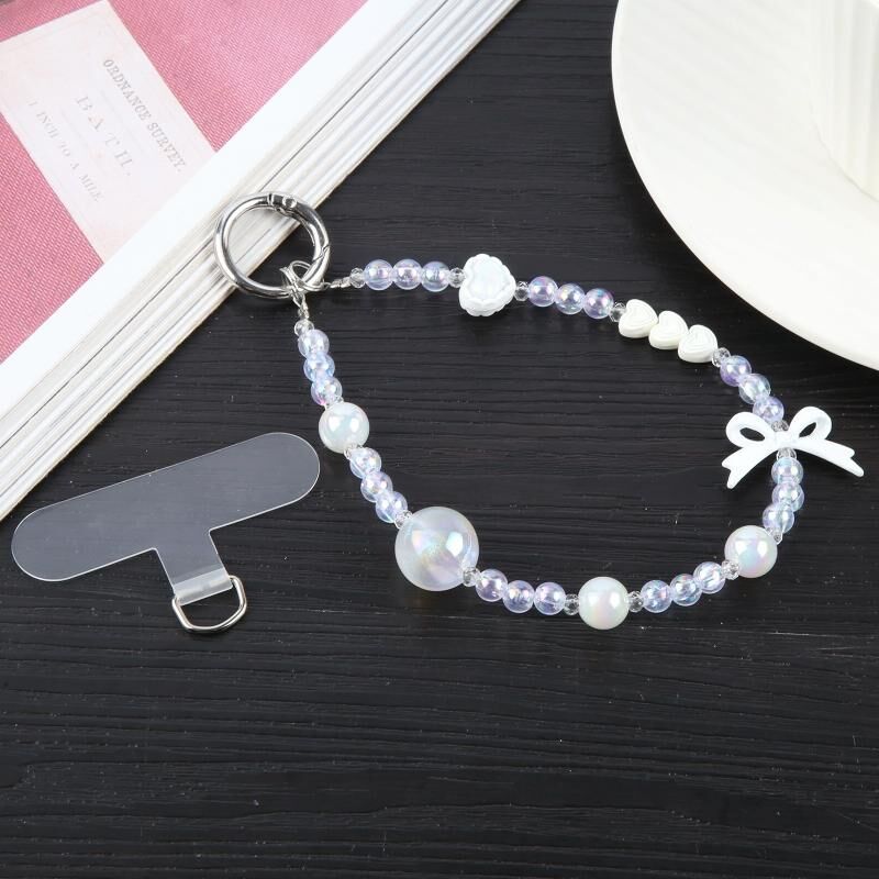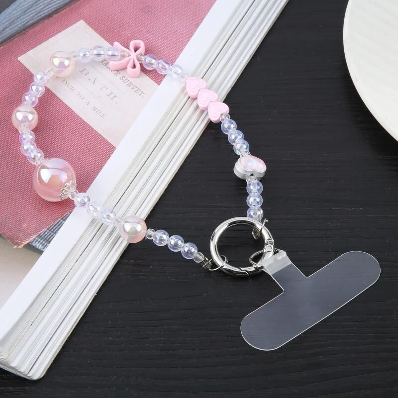 Κινητό τηλέφωνο αντι-χαμένη εκθαμβωτική πολύχρωμες μαργαριτάρια σύντομη αλυσίδα χάντρα (Ροζ)