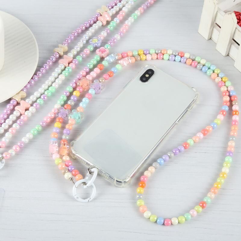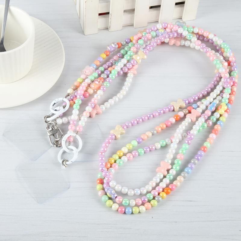 Κινητό τηλέφωνο αντι-χάσει εκθαμβωτική Crossbody μακρά αλυσίδα χάντρα (Πολύχρωμο Πεταλούδα)