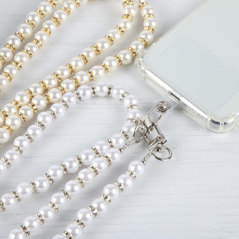 Mobile Phone Anti-lost Flash Diamond Crossbody Long Bead Chain(Gold)