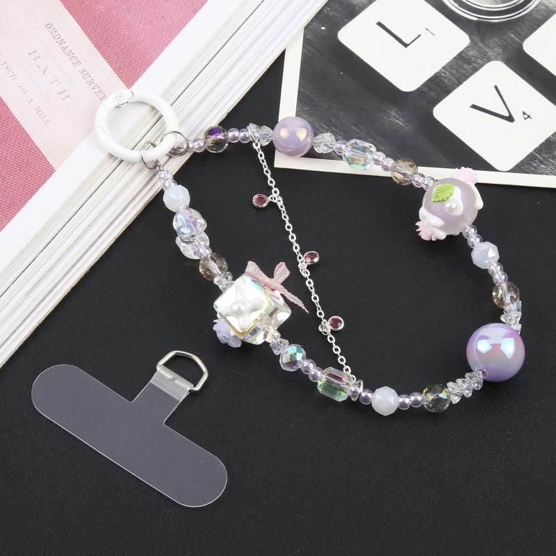Κινητό τηλέφωνο αντι-χάσει λουλούδι μπλοκ χάντρα αλυσίδα χάντρα σύντομη κορδόνι (μωβ)