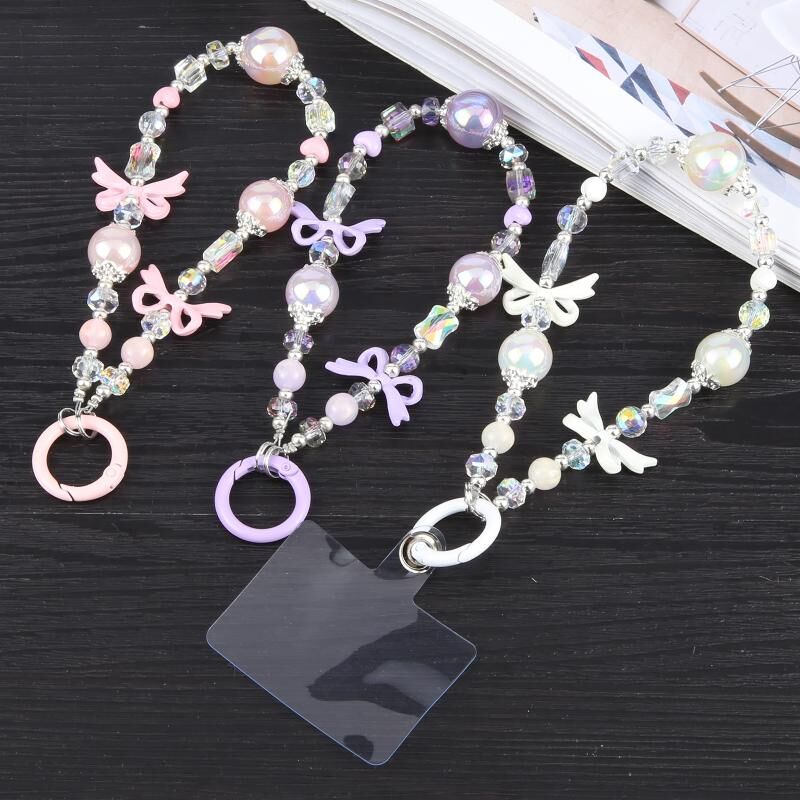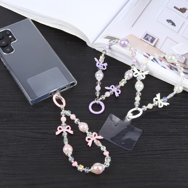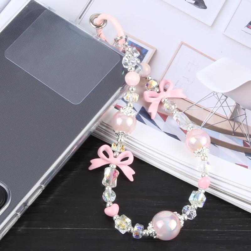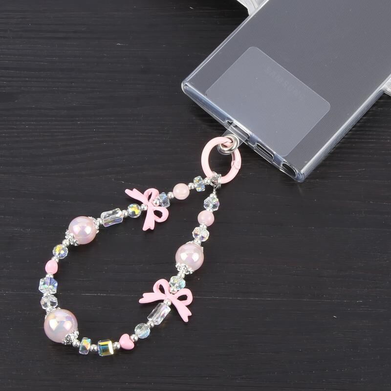 Κορδόνι ασφαλείας για κινητό τηλέφωνο με φωτεινή χάντρα και αλυσίδα (ρόζ)