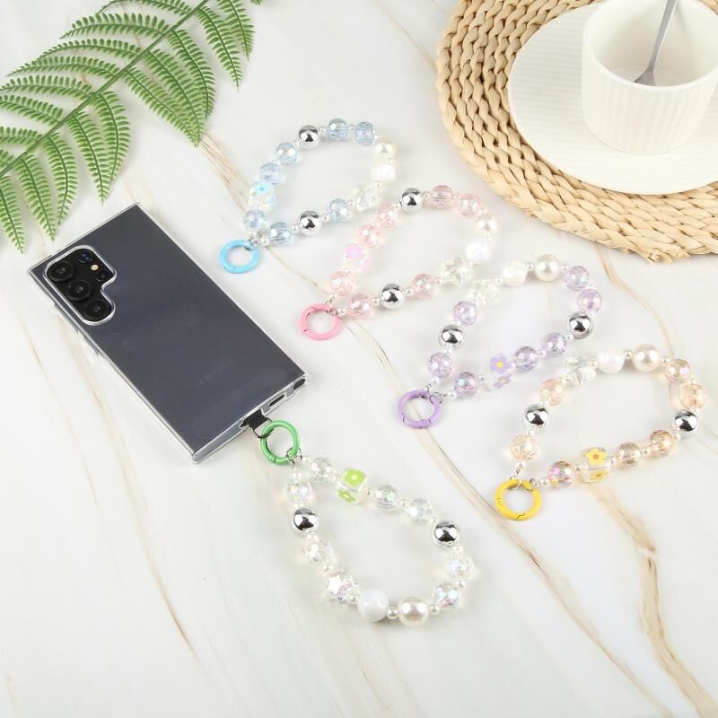 Κορδόνι ασφαλείας κινητού τηλεφώνου με αλυσίδα και χάντρα σε σχήμα αστεριού (Μπλε)