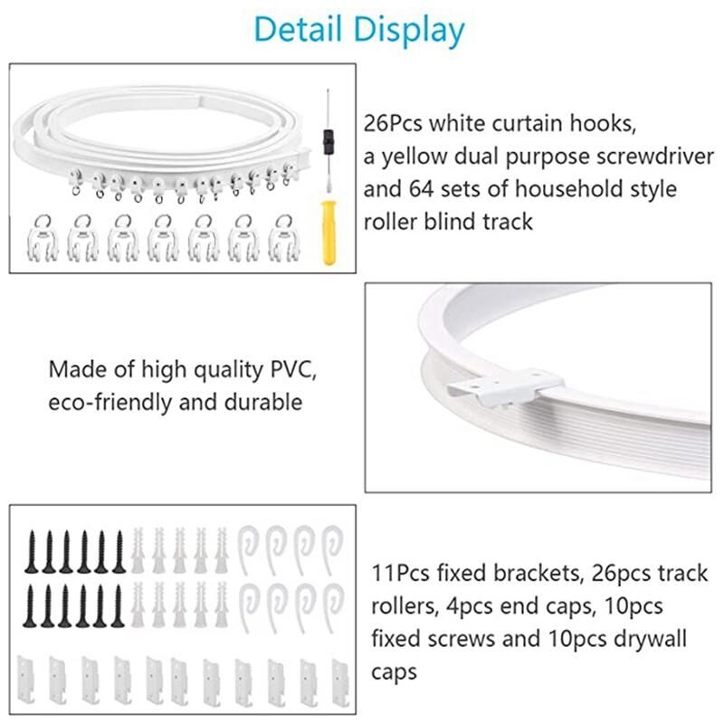 6. 3m suit: 3m curved rail, hook x 26, pulley x 26, top code x 11, screw x 11, expansion plug x 11, plug x 4, screwdriver x 1
