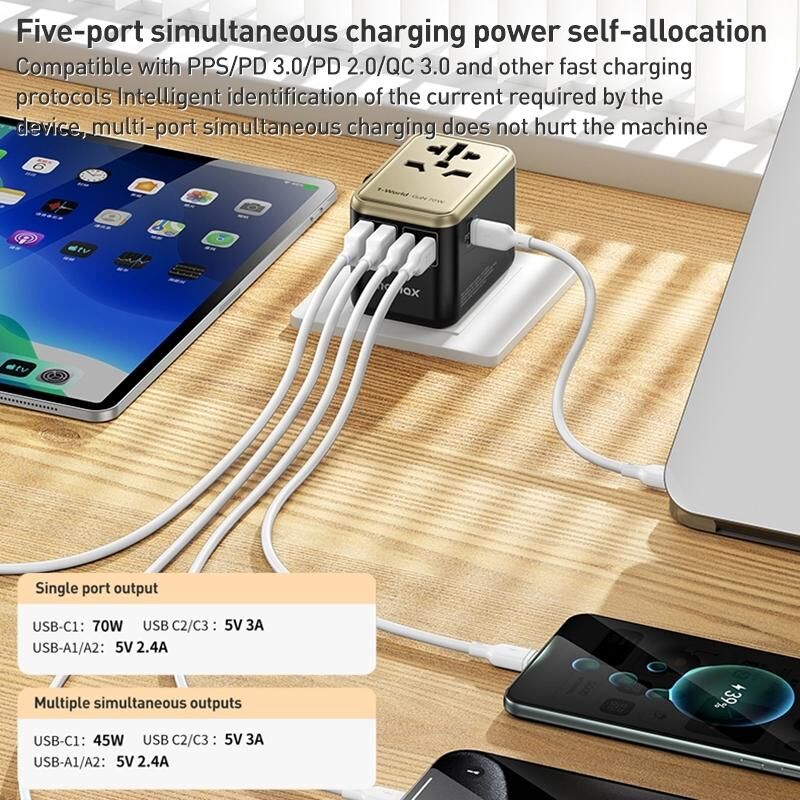 6. Οι τέσσερις προδιαγραφές βυσμάτων Αμερικής/Αυστραλίας/Βρετανίας/Ευρώπης μπορούν να μετατραπούν κατά βούληση, λύνοντας εύκολα το πρόβλημα της φόρτισης κατά τη διάρκεια ταξιδιών σε όλο τον κόσμο.