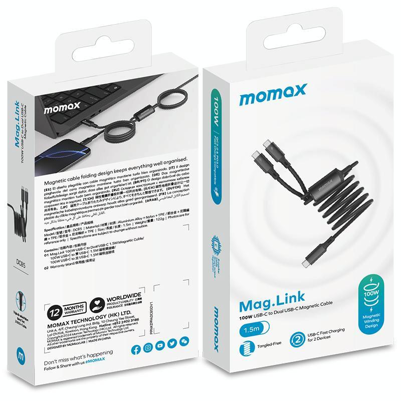 MOMAX DC85D Mag.Link 100W Type-C to Type-C 2 in 1 Magnetic Braided Data Cable, Length:1.5m(Black) (MOMAX)