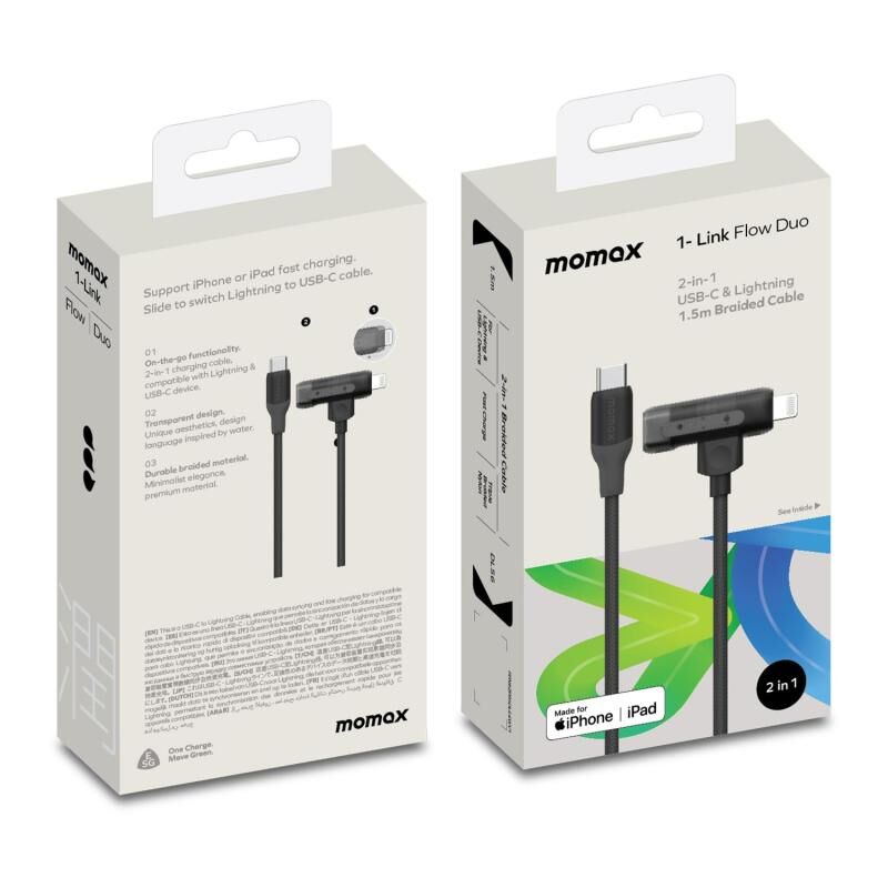 MOMAX DL56 1-Link Flow 60W Type-C to Type-C and 8 Pin Fast Charging Cable, Length:1.5m(Black) (MOMAX)