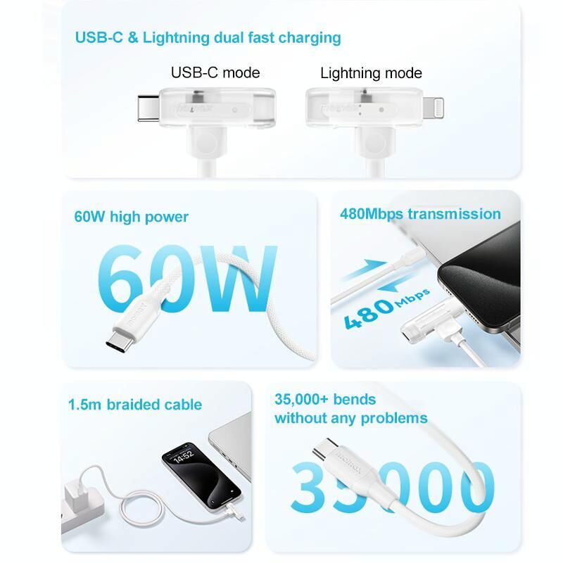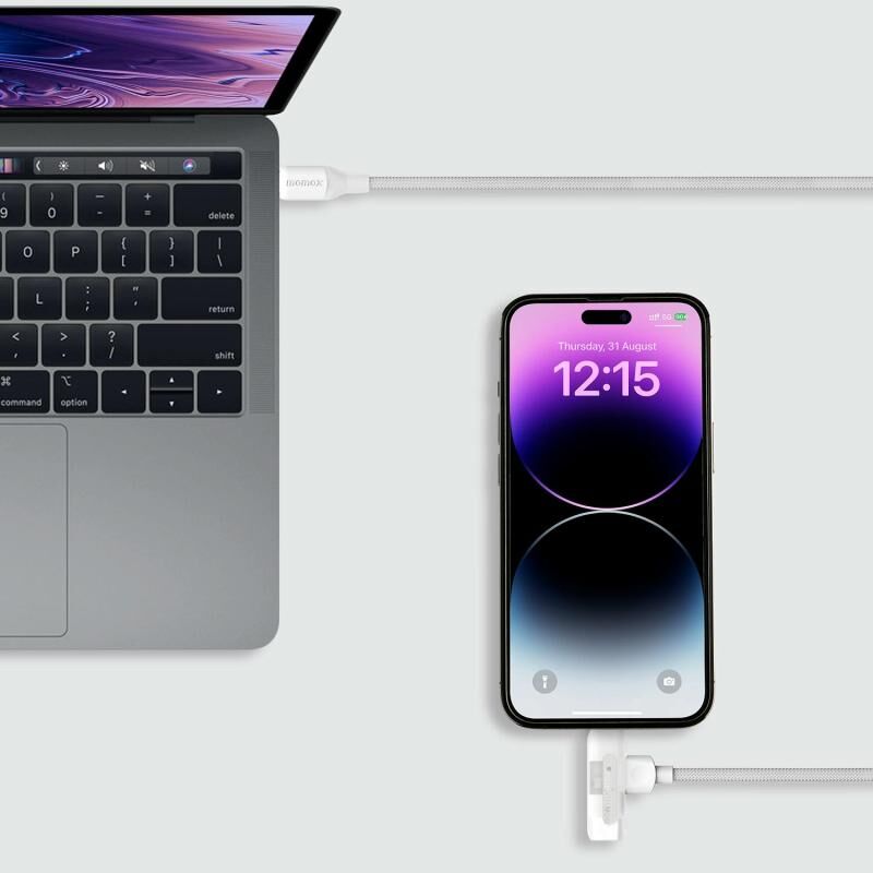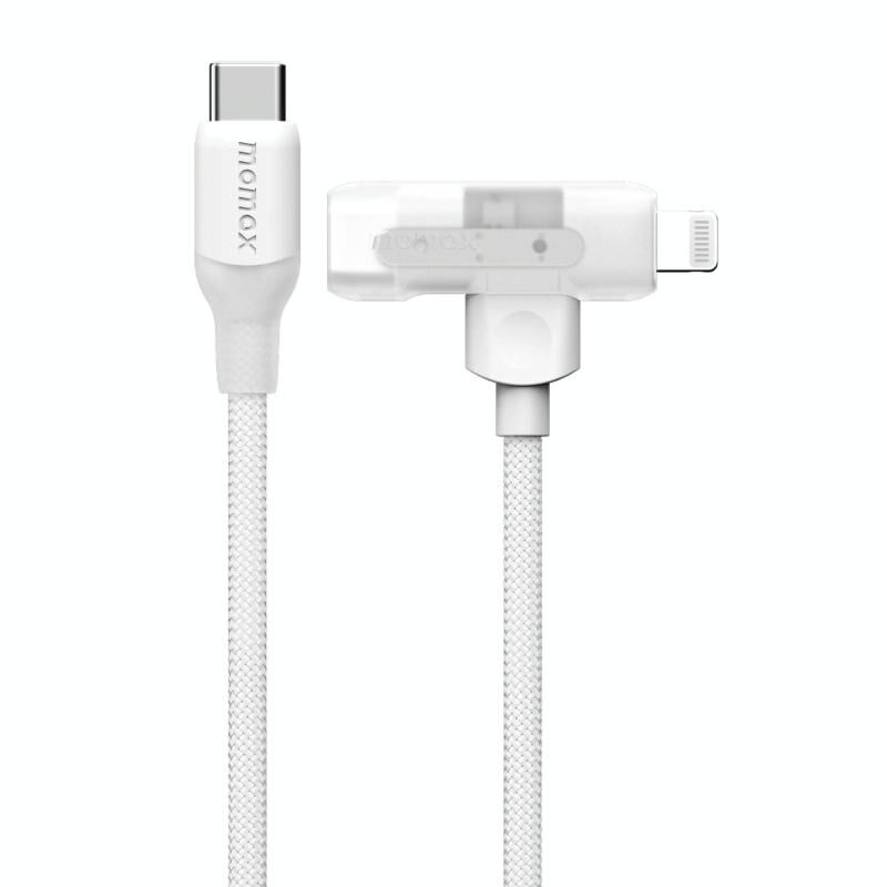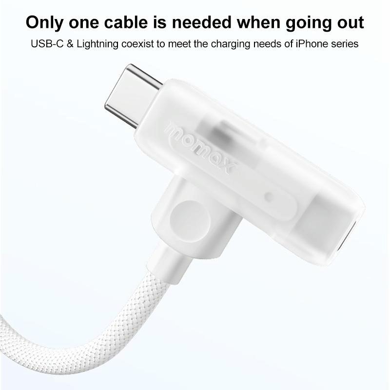 MOMAX DL56 1-Link Flow 60W Type-C to Type-C and 8 Pin Fast Charging Cable, Length:1.5m(White) (MOMAX)