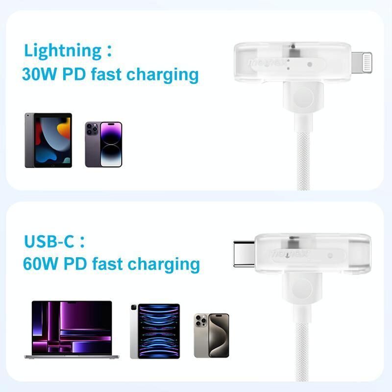1. MFi certified 2-in-1, one-wire dual fast charging: compatible with iPhone and iPad