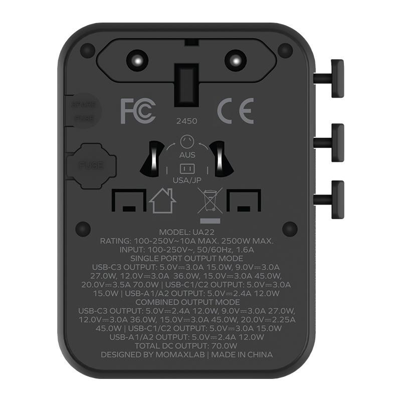 MOMAX UA22 1-World2 70W Dual AC Mini GaN Global Travel Fast Charging Socket(Black) (MOMAX)