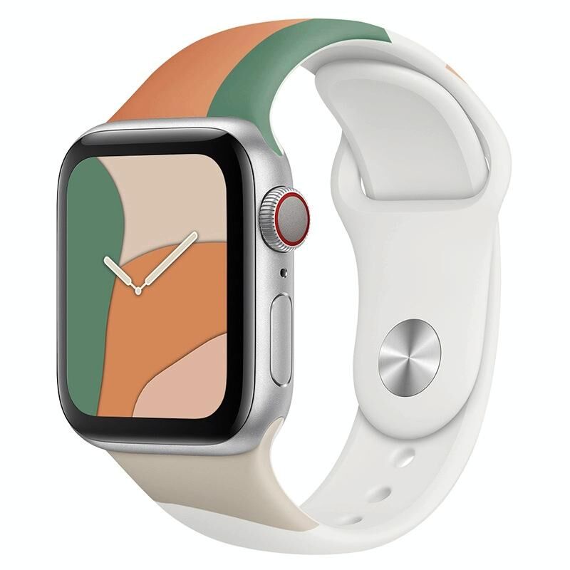 Λουράκι Σιλικόνης για Apple Watch Series 9&8&7 41mm / SE 3&SE 2&6&SE&5&4 40mm / 3&2&1 38mm, σειρά Morandi, σε αντίθετα χρώματα (Γαλακτοχρώματι Μάνγκο Πράσινο)