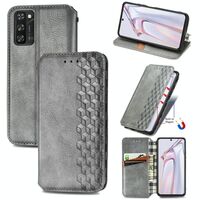 For Blackview A100 Cubic Grid Pressed Horizontal Flip Magnetic PU Leather Case with Holder & Card Slots & Wallet(Grey)