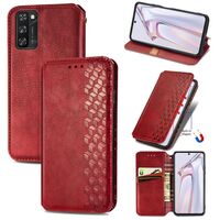 For Blackview A100 Cubic Grid Pressed Horizontal Flip Magnetic PU Leather Case with Holder & Card Slots & Wallet(Red)