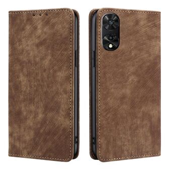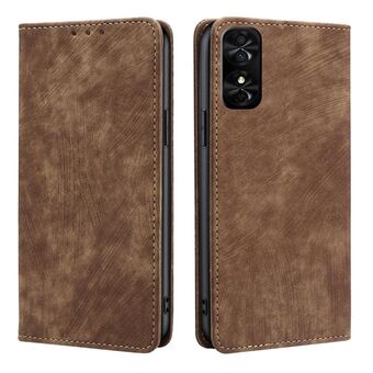 For TCL 50 SE 4G RFID Anti-theft Brush Magnetic Leather Phone Case(Brown)