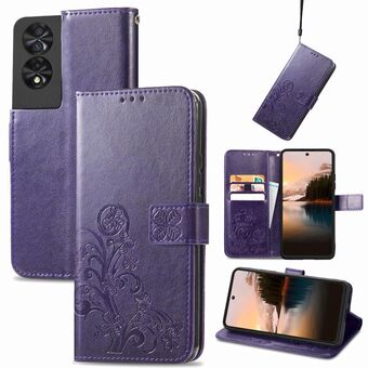 Για TCL 40 Nxtpaper τετράφυλλο κούμπωμα ανάγλυφο πόρπη δερμάτινη θήκη τηλεφώνου (μωβ)