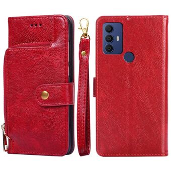 Για TCL 30 SE/306/305/Sharp Aqous V6/Aqous V6 Plus φερμουάρ τσάντα δερμάτινη θήκη τηλεφώνου (κόκκινο)