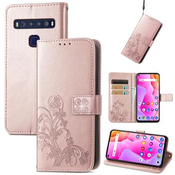 Για TCL 10L Τέσσερα φύλλα κούμπωμα ανάγλυφο αγκράφα κινητό τηλέφωνο δερμάτινη θήκη (Rose Gold)