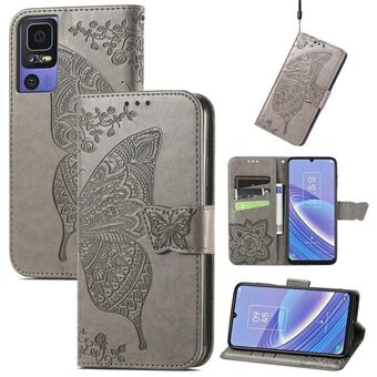 Θήκη τηλεφώνου από δέρμα με ανάγλυφο σχέδιο πεταλούδας και λουλουδιών για TCL 40 SE (Λεβάντα)