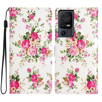 Θήκη τηλεφώνου από δέρμα με σχέδιο για TCL 40 SE (Παιώνιες)