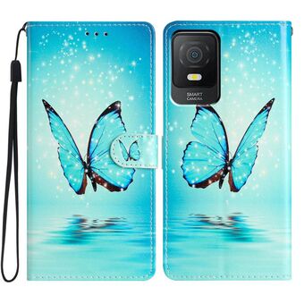 Θήκη τηλεφώνου δερμάτινη με σχέδιο για TCL 403 (Μπλε Πεταλούδα)