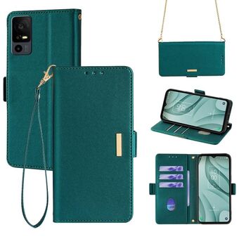 Θήκη τηλεφώνου TCL 505 4G, δερμάτινη, με αλυσίδα και σχέδιο crossbody (Μαύρο)