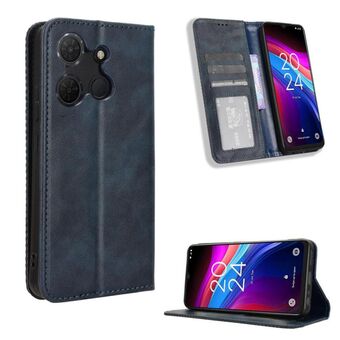 Για TCL 503 Μαγνητική πόρπη ρετρό υφή δερμάτινη θήκη τηλεφώνου (μπλε)