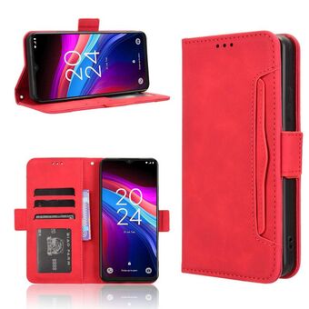Για TCL 503 δέρμα αίσθηση μοσχάρι υφή κάρτα υποδοχές δερμάτινη θήκη τηλεφώνου (κόκκινο)