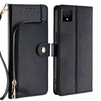 Για TCL 502 φερμουάρ τσάντα δερμάτινη θήκη τηλεφώνου (μαύρο)