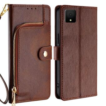 Για TCL 502 φερμουάρ τσάντα δερμάτινη θήκη τηλεφώνου (καφέ)