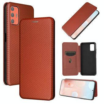 For UMIDIGI A7S Carbon Fiber Texture Horizontal Flip TPU + PC + PU Leather Case with Card Slot(Brown)