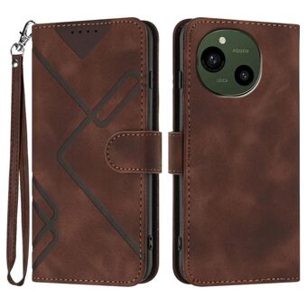 For Sharp Aquos R10 Line Pattern Skin Feel Leather Phone Case(Coffee)