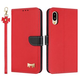 For Sharp Simple Sumaho 6 SHG09 Metal Bow Leather Phone Case with Hand Strap(Red)