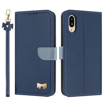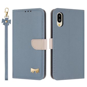 For Kyocera Kantan Sumaho3 A205KC Metal Bow Leather Phone Case with Hand Strap(Light Blue)