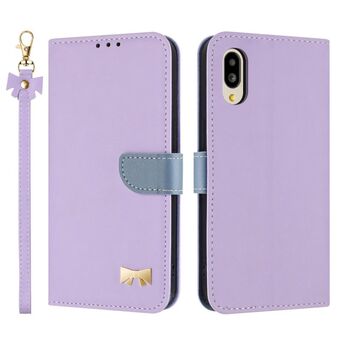 For Sharp Simple Sumaho 6 SHG09 Metal Bow Leather Phone Case with Hand Strap(Purple)