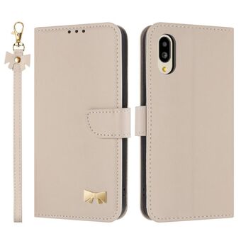 For Sharp Simple Sumaho 6 SHG09 Metal Bow Leather Phone Case with Hand Strap(Apricot)