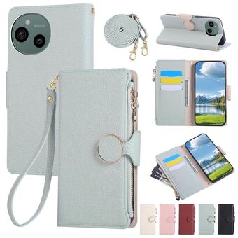 For Sharp Aquos Sense9 Round Buckle Zipper Wallet Leather Phone Case with Crossbody Strap(Black)