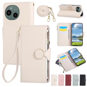 For Sharp Aquos Sense9 Round Buckle Zipper Wallet Leather Phone Case with Crossbody Strap(White)