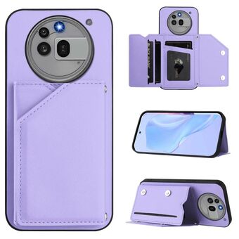 For Nothing Phone 3a Pro Skin Feel Four Card Slots Phone Case with Wrist Strap(Purple)