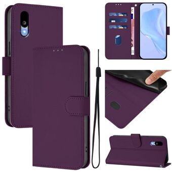 For Sharp Basio Active3 Skin Feel Solid Color Leather Phone Case with Lanyard(Violet)