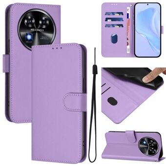 For Oukitel C35 Skin Feel Solid Color Leather Phone Case with Lanyard(Violet)