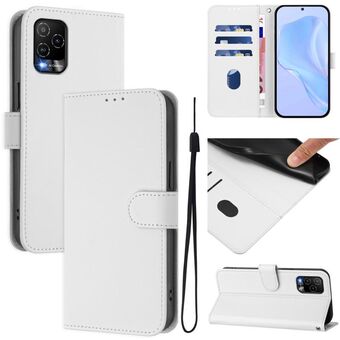 For BLU View 5 Pro Skin Feel Solid Color Leather Phone Case with Lanyard(White)