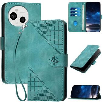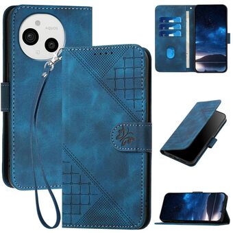 For Sharp Aquos Sense9 Grid Butterfly Embossed Pattern Leather Phone Case with Lanyard(Light Blue)