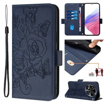 For Oukitel C38 Embossed Rose RFID Anti-theft Leather Phone Case(Dark Blue)