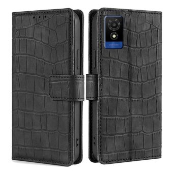 For TCL 503 4G Skin Feel Crocodile Magnetic Clasp Leather Phone Case(Black)